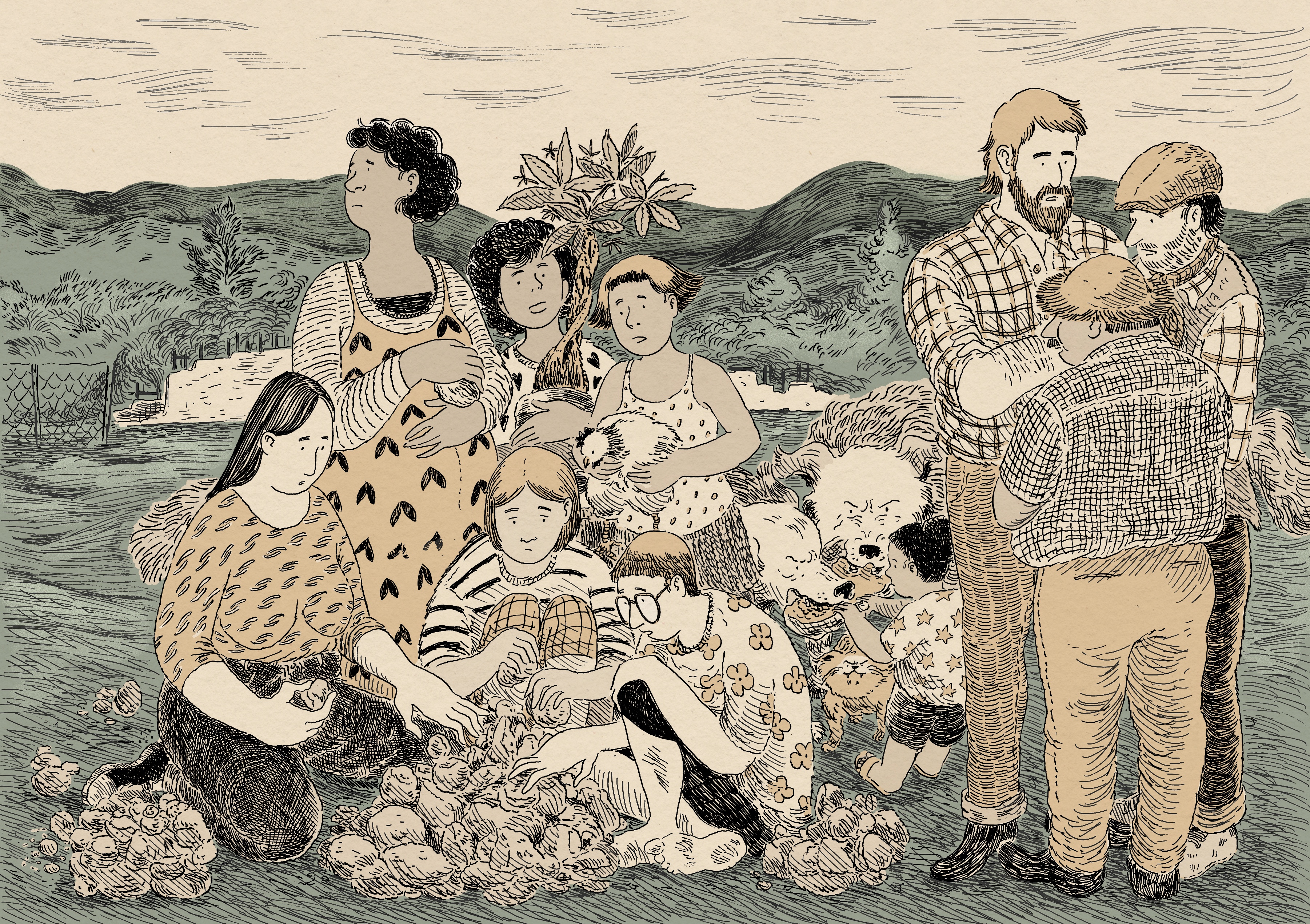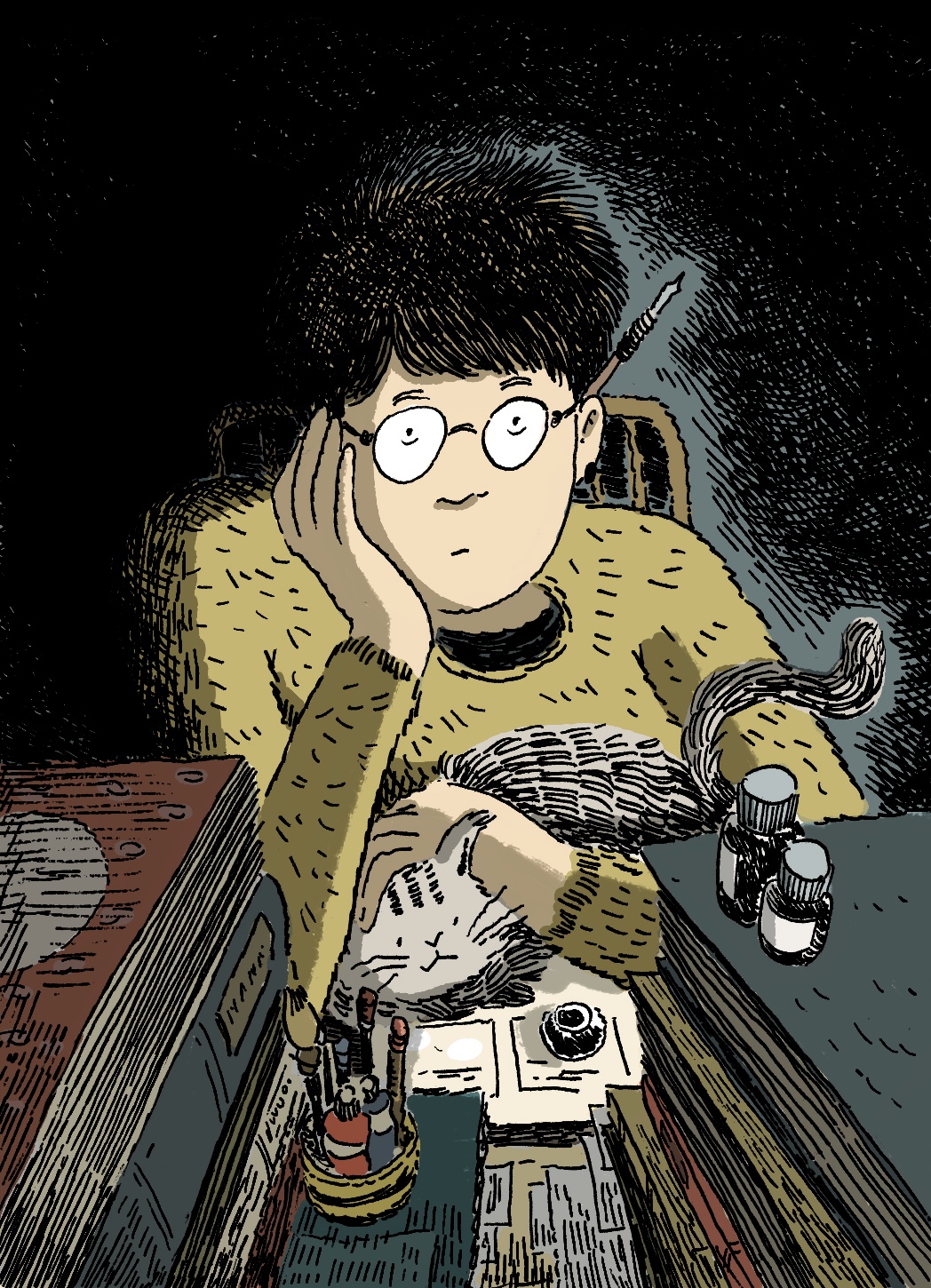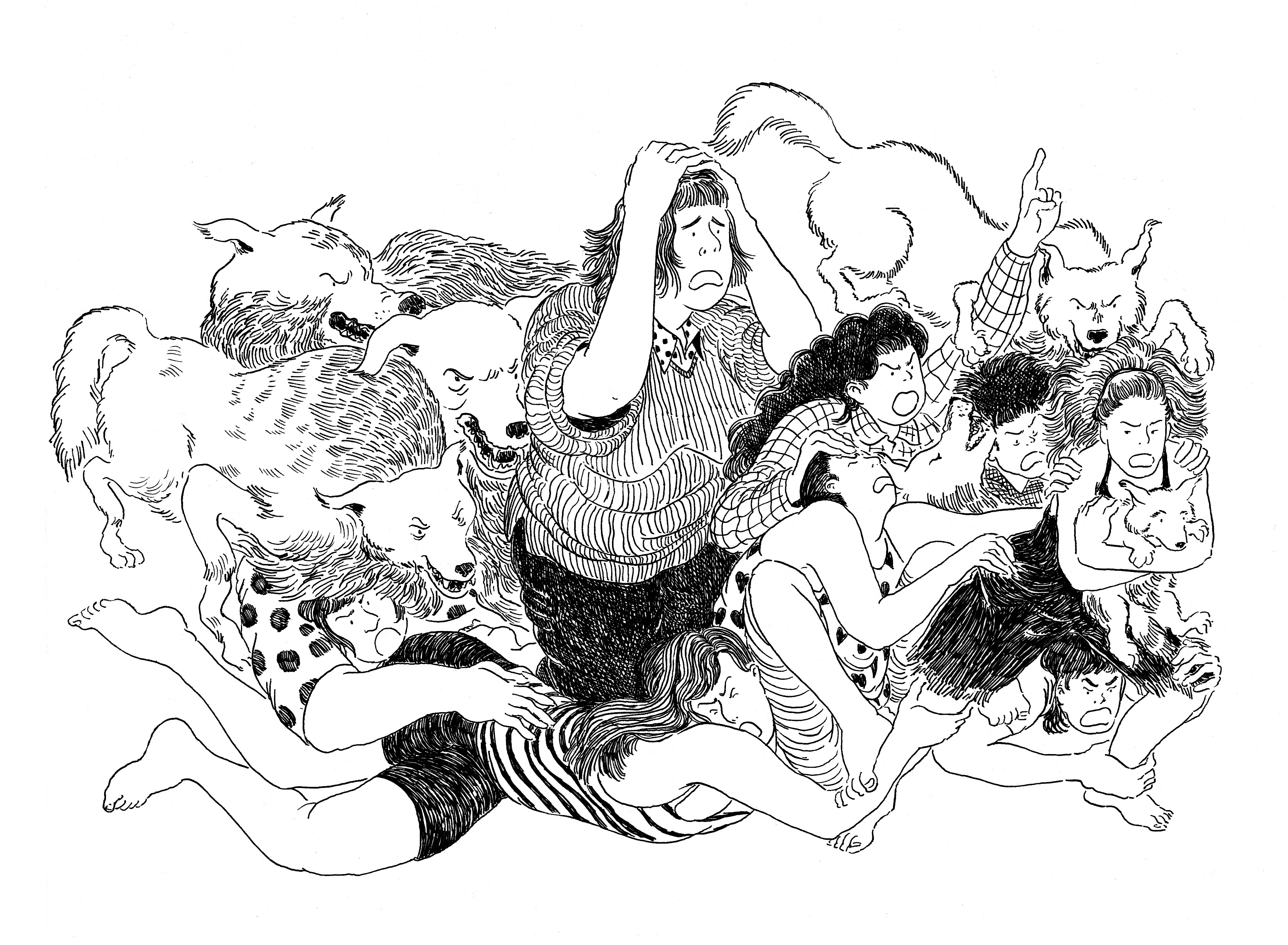"Father and daughters" - Traditional ink, from my sketchbook - 2025